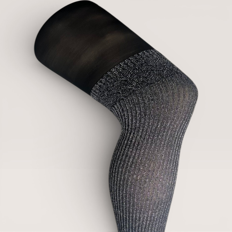 Collant opaque scintillant effet jambière avec motifs en lurex sur la bordure inférieure. Confortable et extensible, il apporte une touche brillante et élégante à vos tenues